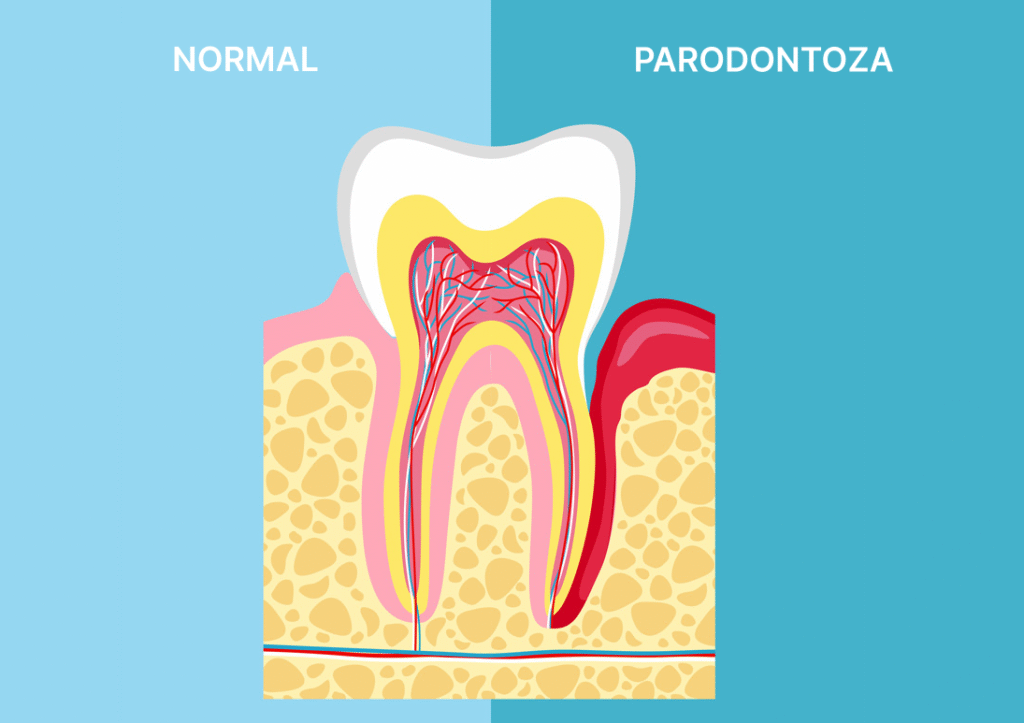Parodontoza (boala parodontală) este o infecție cronică a gingiilor și a osului care susține dinții. În lipsa tratamentului, duce la retracția gingiilor, distrugerea osului și, în final, la pierderea dinților. Boala evoluează lent, dar efectele sunt ireversibile dacă nu se intervine la timp.